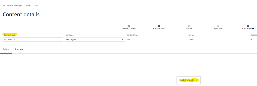 - Once you’re in the A+ Content Manager, click the green button on the far right, “Start creating A+ content”
