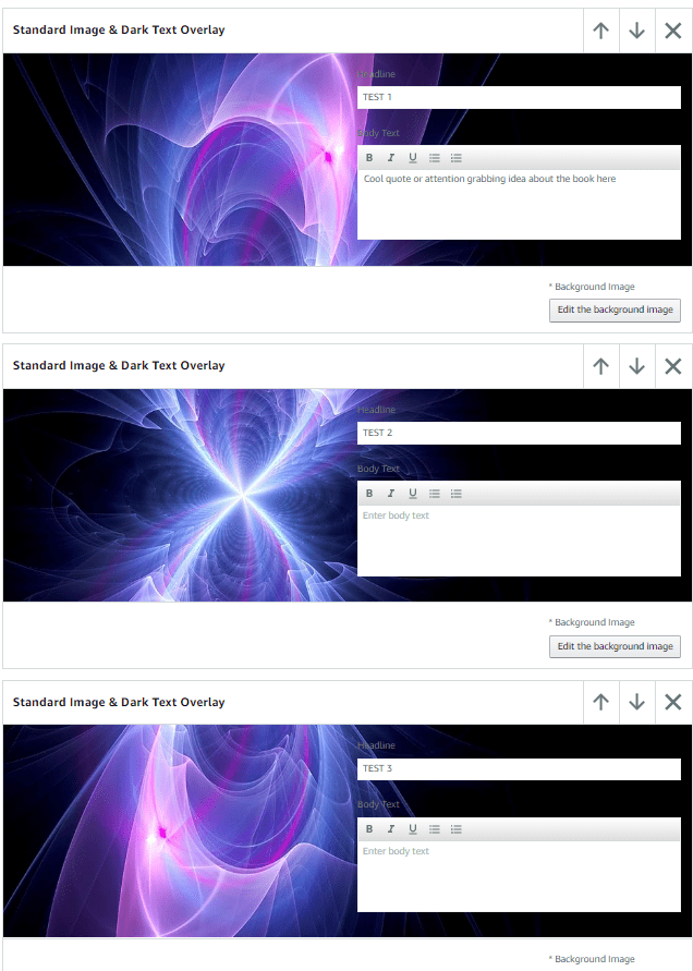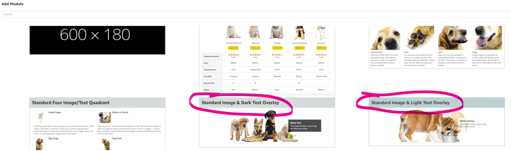 - To get the trifold approach, select either “Standard Image & Dark Text Overlay” or “Standard Image & White Text Overlay” depending largely on the color of images you’ll be selecting. These are located in the second row of options (~repeat start here~)