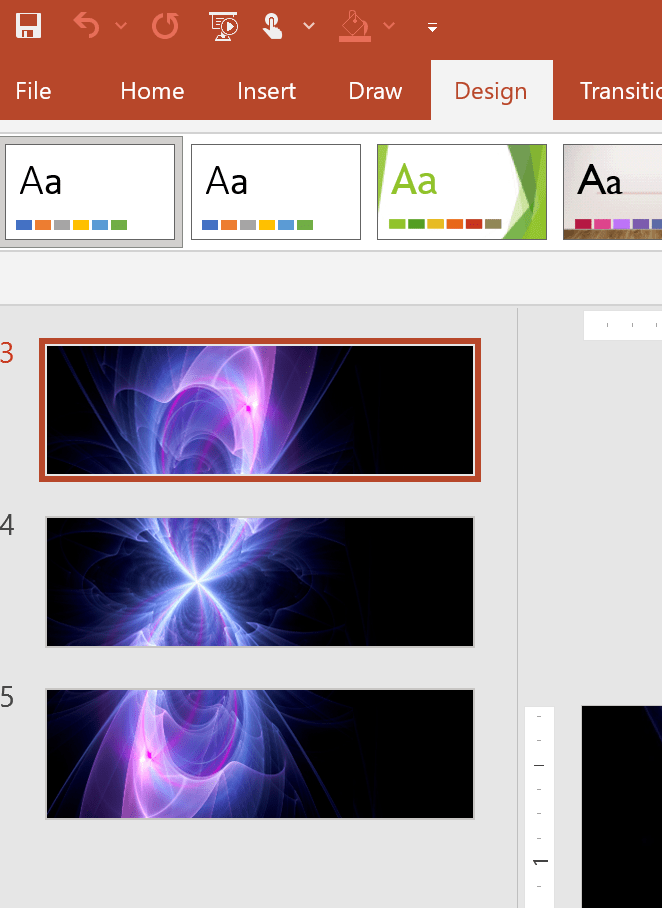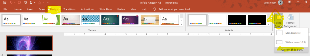 - Open Powerpoint with a blank document and navigate to the “Design” ribbon at top